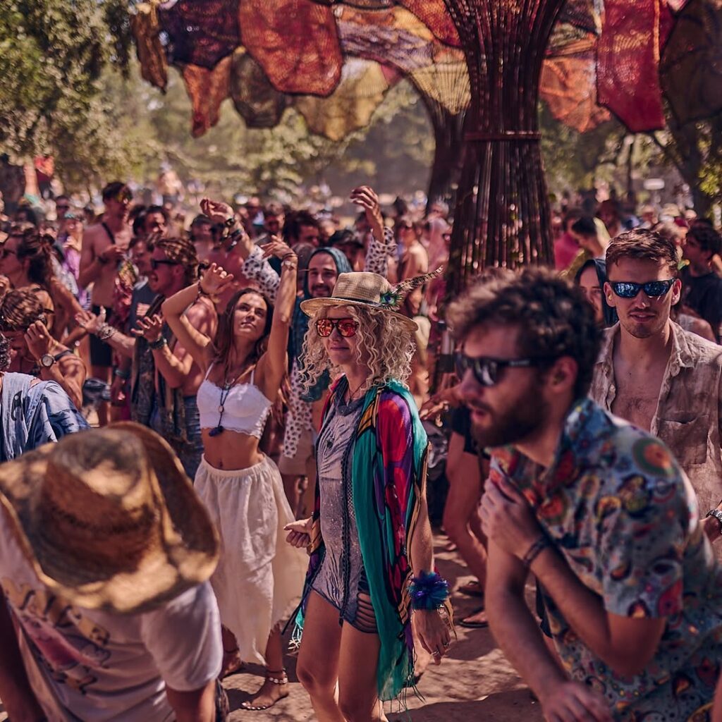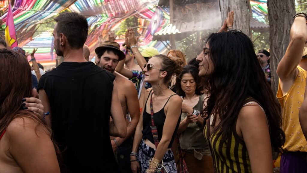 We climbed up to the top of the meadows to watch the start of the opening ceremony. It wasn’t our first time witnessing the moment when the dancefloor becomes a living organism — but it still hit us hard. Seeing the scale of it, the number of people gathered to celebrate life, dance, and collective freedom… it’s moving in a way that’s difficult to explain to anyone who hasn’t felt it.